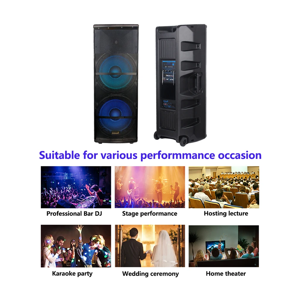 Special Offer 듀얼 15 "5000W 액티브 오디오 전원 DJ PA USB BT 스피커 4 채널 UHF 핸드 헬드 헤드셋 무선 마이크 SDMN-15RGB + SMU4000AB Discount (4%OFF) Today!