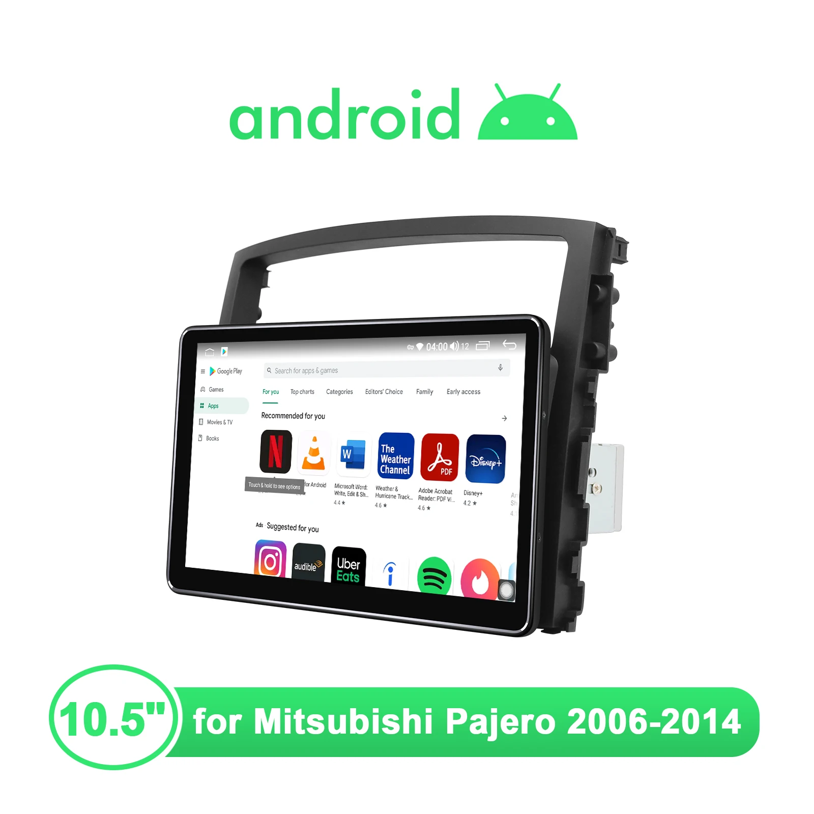 Product Name: 1 Din 자동차 라디오 10.5 "GPS 안드로이드 멀티미디어 플레이어 1DIN 자동차 지능형 시스템 무선 카플레이, 미쓰비시 파제로 2006-2014 용