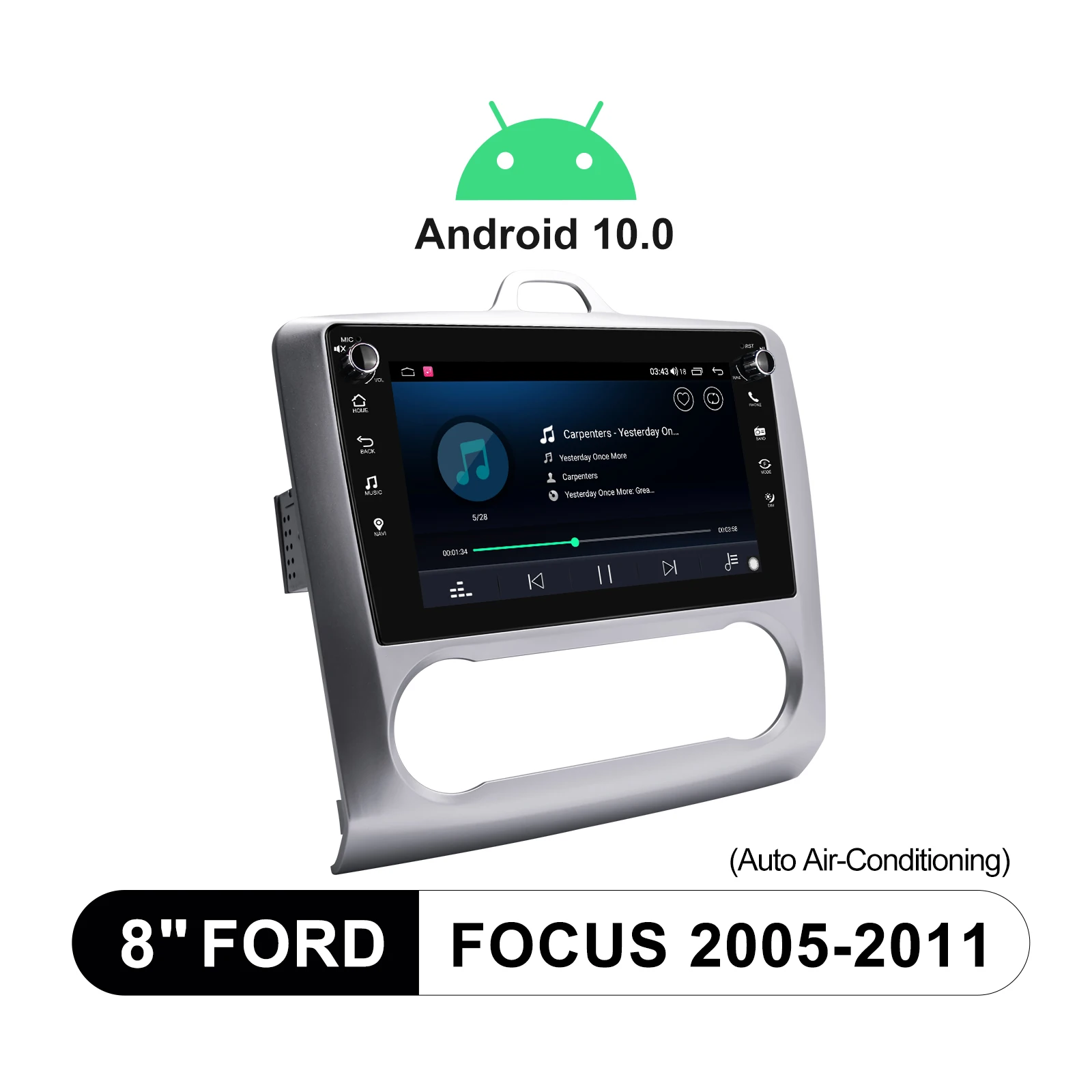 Product Name: 8 "라디오 테이프 레코더 중앙 멀티미디어 1din 안드로이드 자동 무선 카플레이 블루투스 포드 포커스 2005-2011 자동차 음악 시스템